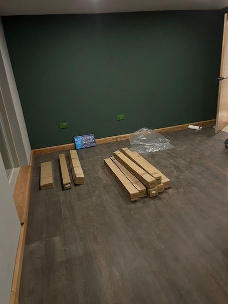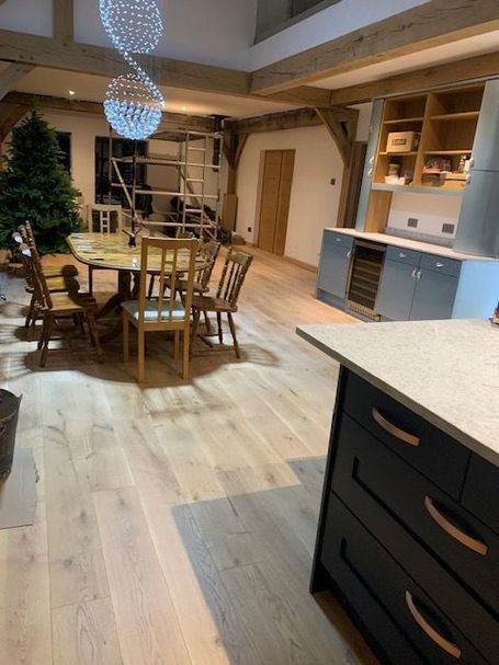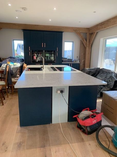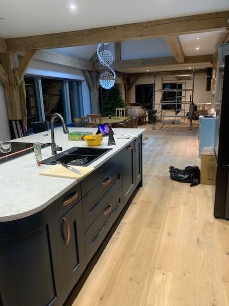 All Plasterboard sheets are now up in the living area of the house, just a few to be added on the void storage space ceiling, Plastering is complete, painting for the first floor rooms needs to be completed, most other walls and ceilings are painted. Kitchen is complete Master En-Suite is finished, Family Bathroom just needs some grouting completed around the built in bath. Bed 2 En Suite floor tiles are laid, just need to be grouted, shower and some wall tiles to be fixed and grouted